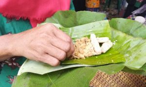 Namun, saat ini Sumarsini mengatakan, Sego Ces sudah berinovasi tanpa menggunakan kreweng. Alias, cara olah kelapa parut ditongseng tanpa minyak. “Untuk bumbunya seperti biasa. Bawang merah, bawang putih, daun jeruk, gula, garam. Terus ada samir itu daun jati sebagai pembungkus Sego Ces. Khas dari Samin, kita mengolahnya tanpa menggunakan minyak.”