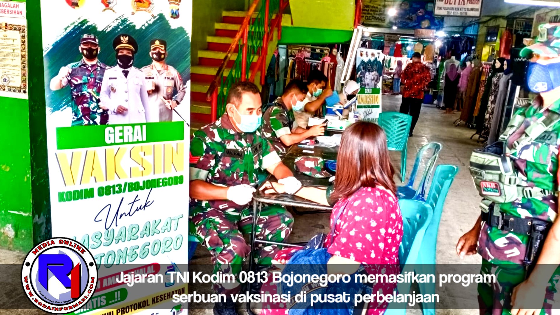 Sebagai upaya mendukung kebijakan pemerintah tersebut, Kamis (14/4/2022), jajaran TNI Kodim 0813 Bojonegoro terus bergerak memasifkan program serbuan vaksinasi terutama booster secara mobile di Pasar Kota Bojonegoro, Bravo Swalayan dan di halaman Masjid Desa Sukorejo Kecamatan Bojonegoro.